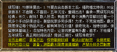 1.70金币版|1.70月卡传奇|续写1.70特色原味复古|续写1.80龙之传说